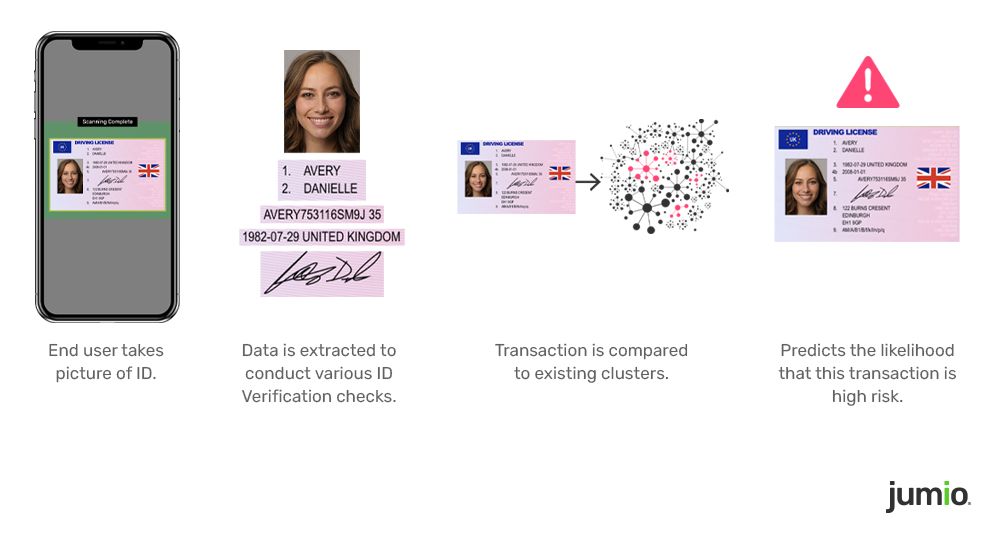 Jumio از فناوری OCR (تشخیص نوری کاراکتر) بسیار پیشرفتهای استفاده میکند که قادر است اطلاعات مندرج در اسناد را با دقت بالا استخراج کند. این سیستم نهتنها متون، بلکه ساختار سند، فرمت، فونت، کیفیت چاپ و علائم امنیتی آن را نیز بررسی میکند تا اصالت مدرک را ارزیابی نماید. OCR مورد استفاده Jumio بهصورت خودکار تشخیص میدهد که سند از کدام کشور است و آیا با الگوی شناختهشده برای آن نوع مدرک مطابقت دارد یا نه.